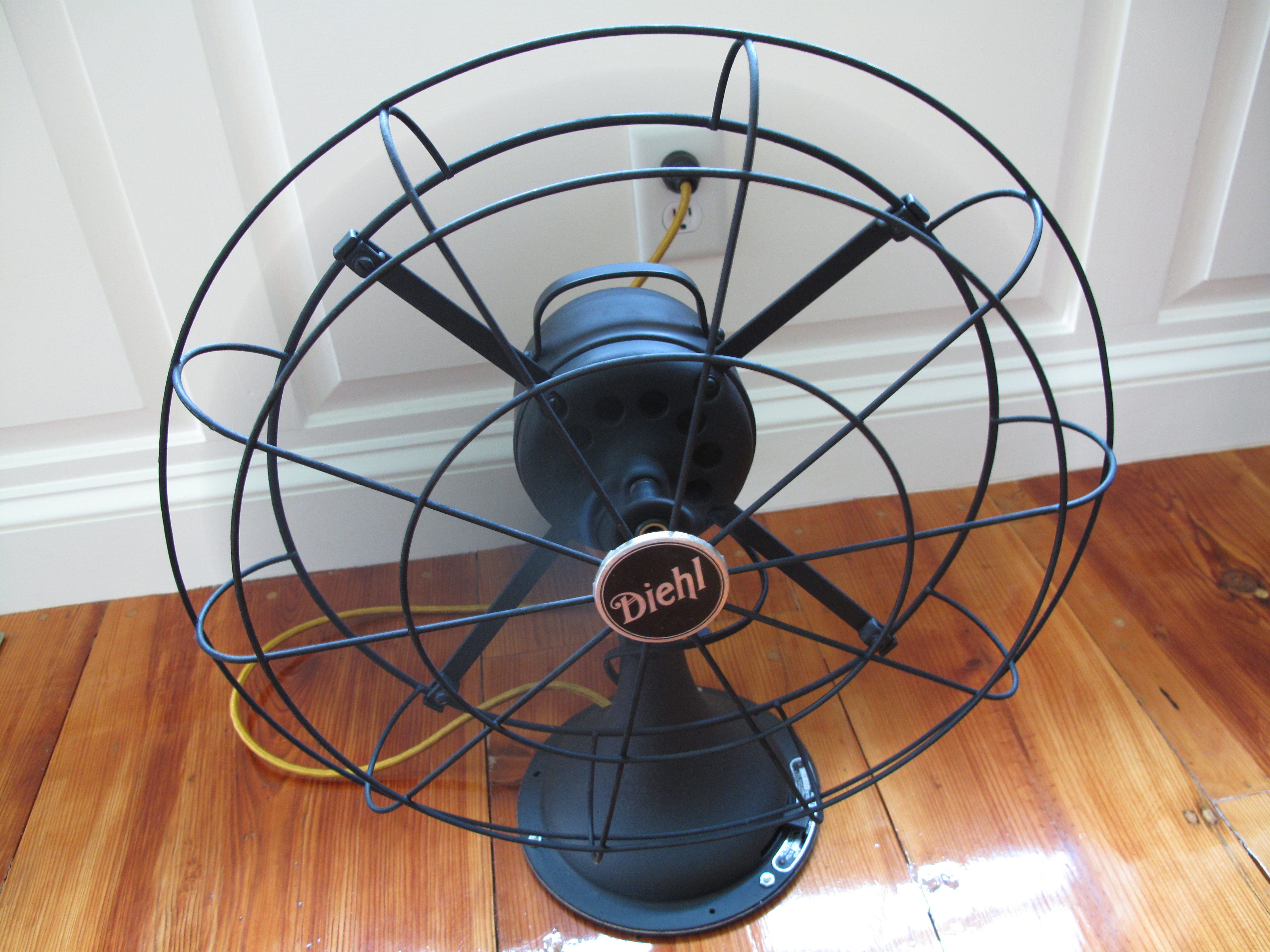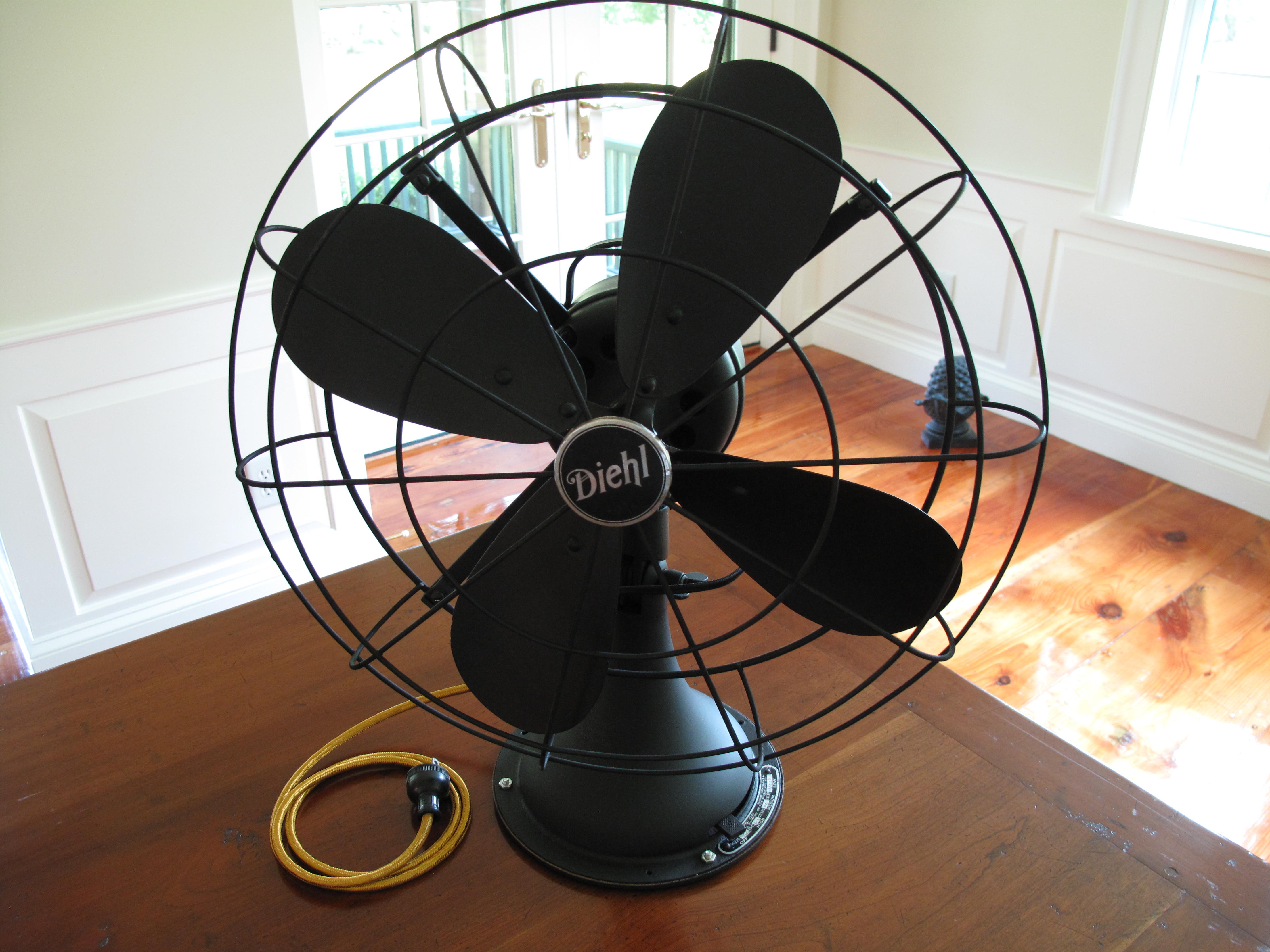 This is a fantastic Diehl oscillating fan!  It has been completely gone over, with new period style wiring, a thorough cleaning, paint and an oiled motor.  Both the wiring to the motor and the power cord have been replaced.  Definitely an exceptional example of a solid vintage fan.  It runs smoothly and is very quiet.  The three speed switch works just as it should.