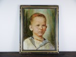 Offering a portrait of a handsome little fellow in a sailors outfit.  Painted in 1947 and shows very well in it’s original Art Deco frame.  The painting style is loose and comfortable.  Great use of light and shadow.  The colours are bright and the surface is clean.  No noticeable cracks or rips in the canvas.  A very well painted portrait with a natural sparkle in the subjects eyes.  There is some texture to the paint surface, as the painting was done on a textured canvas.