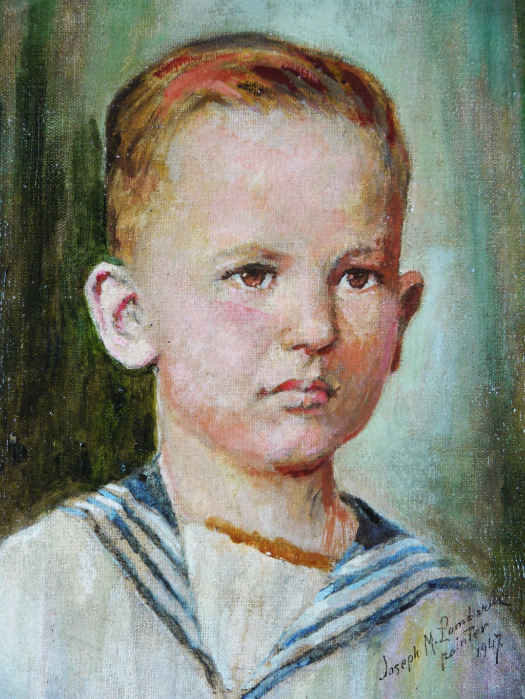 Portrait of Boy In Sailors Outfit, Signed Lombardi 1947, Oil on Canvas